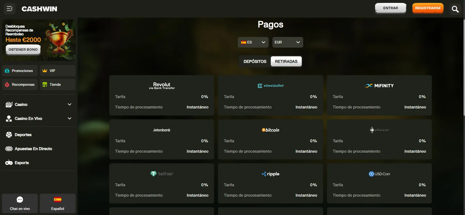 Retiros instantáneos con Cashwin