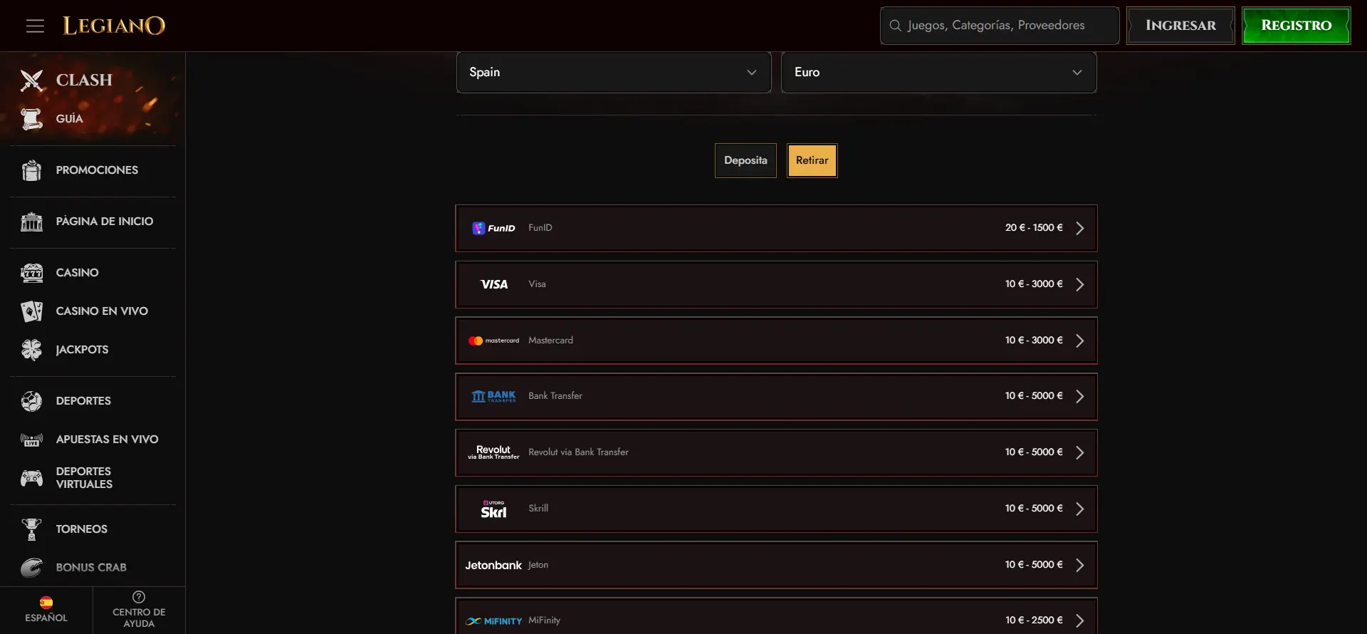 Dependiendo del método de pago, los tiempos de retiro varían. Si prefieres criptomonedas como Bitcoin, Litecoin o Ethereum, el retiro será instantáneo. En cambio, para Revolut via Bank Transfer, MiFinity, JetonBank, Visa o Mastercard, el proceso puede tardar hasta 72 horas.