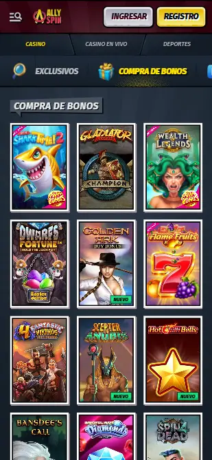 Otro tipo popular de tragamonedas son aquellas con la función Bonus Buys. AllySpin Casino también tiene una amplia oferta en este tipo de juegos, y te recomendamos probar: