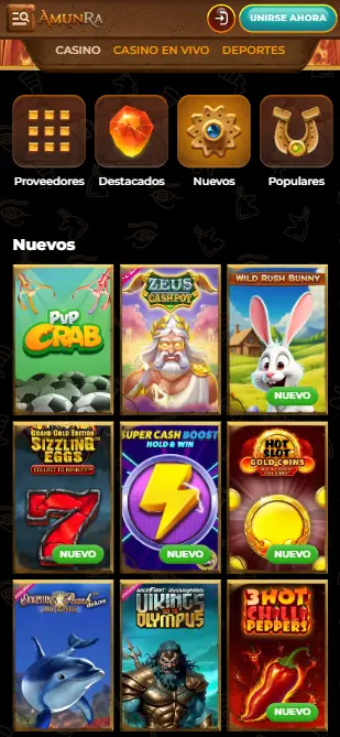 Como ya mencionamos, la biblioteca de juegos de AmunRa Casino está bastante equilibrada, pero su enfoque principal son las tragaperras, que ofrecen una gran variedad. Todos los tipos de juegos están organizados en categorías para que puedas encontrar rápidamente lo que necesitas. Al momento de escribir esta reseña, AmunRa ya contaba con más de 5,000 juegos de proveedores reconocidos como NetEnt, Pragmatic Play, Games Global, Relax Gaming, Betsoft, Big Time Gaming, Evolution, Yggdrasil, entre muchos otros. Además de esta amplia selección de tragaperras, el casino ofrece una excelente variedad de juegos crash y loterías.