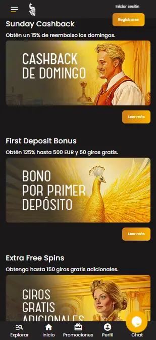 La interfaz del sitio móvil está adaptada para que sea fácil de usar en dispositivos móviles sin necesidad de descargar aplicaciones adicionales. Puedes disfrutar de todas las funciones y juegos disponibles en la versión de escritorio, incluyendo tragamonedas, juegos de mesa, juegos con crupieres en vivo y apuestas deportivas.