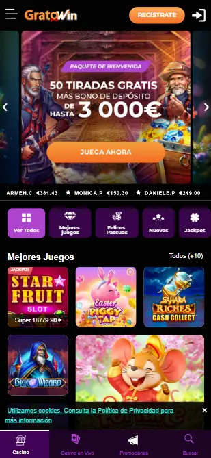 GratoWin Casino destaca por su sólida oferta: más de 500 juegos de alta calidad, estrictas medidas de seguridad y un soporte al cliente eficiente, ideal tanto para jugadores ocasionales como habituales. Cumple con estándares que protegen datos y privacidad, reforzando su reputación como plataforma segura y legítima, alejada de fraudes. Su biblioteca incluye tragamonedas variadas, aunque se echan en falta más botes progresivos.