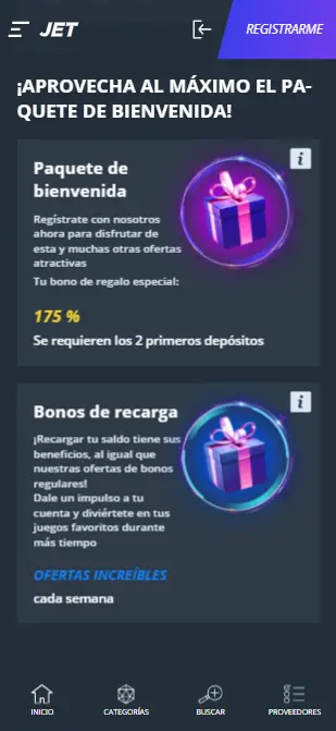 Cada nuevo jugador en el Casino JET después de registrarse se une a un sitio de apuestas emocionante que ofrece todos los mejores juegos de casino online y excelentes opciones para apuestas deportivas. La moderna web del casino está equipada con características sobresalientes y útiles adiciones que siempre mantienen un alto nivel de emoción. Tanto los jugadores nuevos como los experimentados apreciarán el diseño conciso y la funcionalidad impecable del casino móvil, así como los excelentes bonos.