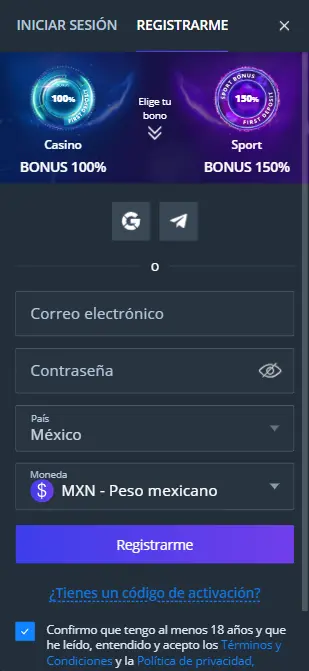 Código Promocional: Bonos exclusivos vía redes sociales o boletín, algunos sin depósito.