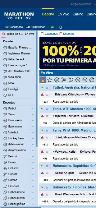 En cuanto a la biblioteca de juegos, Marathonbet tiene un catálogo algo limitado, con poco más de 400 títulos. Sin embargo, el enfoque principal está en las apuestas deportivas, donde realmente hay mucho para elegir. Ofrecen más de 30 deportes clásicos como fútbol, tenis, hockey y baloncesto. No obstante, si eres fanático de los deportes virtuales o los torneos de eSports, podrías sentirte decepcionado, ya que estas opciones no están disponibles en Marathonbet.