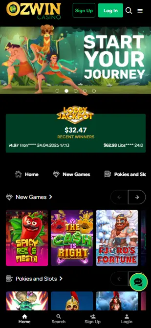 El sitio web de Ozwin Casino destaca por su diseño distintivo: un fondo negro combinado con tonos verde oscuro y detalles que evocan esmeraldas, reflejando su conexión con la famosa historia del «Mago de la Ciudad Esmeralda». Las imágenes coloridas de sus tragaperras más populares y los banners con tesoros y18 añaden un toque de fantasía visual que captura la atención. Sin embargo, la navegación no es tan fluida como podría esperarse: el software, algo anticuado, puede hacer que las transiciones entre páginas sean lentas y, en ocasiones, presenten fallos.