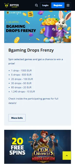 Aunque no hay una app oficial, Ripper Casino está optimizado para móviles y funciona perfectamente en navegadores de iOS y Android. La interfaz se adapta a pantallas pequeñas, permitiéndote jugar, reclamar bonos y gestionar tu cuenta sin problemas. Usa Chrome para la mejor experiencia, y disfruta de la libertad de jugar donde quieras, incluso en modo demo sin iniciar sesión.