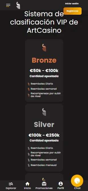 Art Casino también ofrece un programa de lealtad de 20 niveles, abierto a todos los jugadores, donde cada apuesta acumula puntos que pueden intercambiarse por cashback, giros gratis o créditos de bonificación. El programa fomenta la participación a largo plazo y ofrece beneficios progresivamente mayores a medida que avanzas en los niveles.