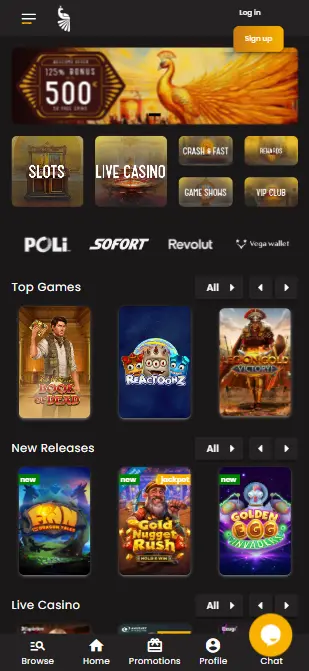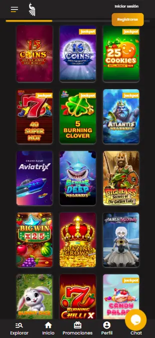 La interfaz del sitio móvil está adaptada para que sea fácil de usar en dispositivos móviles sin necesidad de descargar aplicaciones adicionales. Puedes disfrutar de todas las funciones y juegos disponibles en la versión de escritorio, incluyendo tragamonedas, juegos de mesa, juegos con crupieres en vivo y apuestas deportivas.