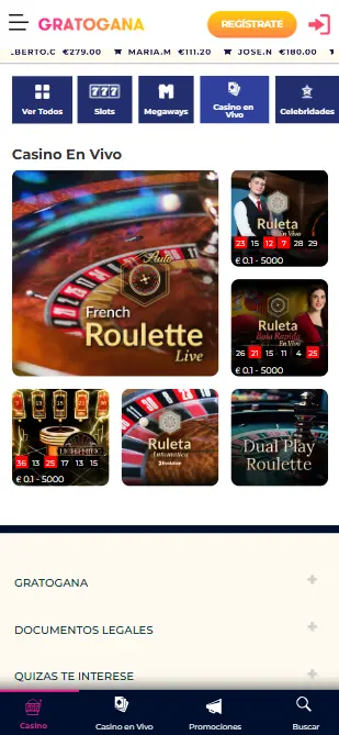 Por supuesto que sí, GratoGana tiene una sección de ruletas en vivo muy populares entre los casinos en directo con los mejores títulos de Evolution. Actualmente, casino ofrece 5 tipos de ruleta con crupier en vivo.