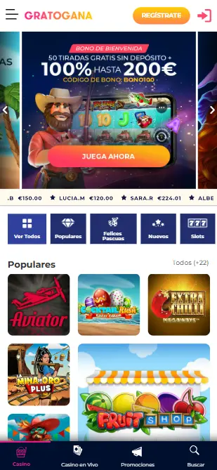 GratoGana gestionado por la maltesa Playes PLC y regulado por la DGOJ, emerge como un casino online sobresaliente gracias a su propuesta distintiva de tragaperras, rasca y gana y bingo. Esta plataforma, respaldada por altos estándares de seguridad, ofrece a los jugadores una experiencia cautivadora y llena de posibilidades desde el primer momento.