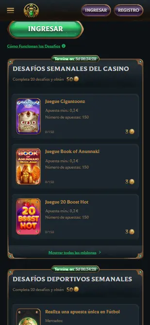 Talismania Casino es una plataforma vibrante y segura, enfocada principalmente en jugadores de España, Alemania y Francia, con un sitio traducido al inglés, alemán y francés para mayor accesibilidad. Su diseño, inspirado en el antiguo Egipto, presenta un enorme escarabajo y símbolos místicos que crean una atmósfera intrigante, complementada por una paleta de colores suaves que no fatiga la vista y textos fáciles de leer. La navegación es intuitiva, con un menú lateral bien estructurado y pestañas convenientemente ubicadas que facilitan el acceso a secciones populares como “TOP”, “nuevos juegos”, “deportes en vivo” y “juegos populares”, además de una función de búsqueda eficiente.