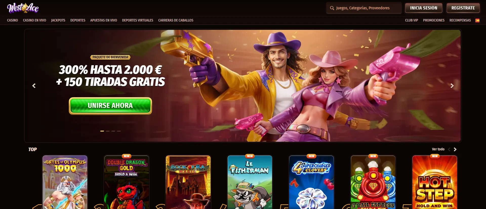 Westace es uno de los casinos nuevos con mayor volumen de catálogo: más de 11.000 juegos de 109 proveedores, lo que lo sitúa por encima de la media del sector. Su punto fuerte son los retiros en criptomonedas, que se procesan en menos de 24 horas según las condiciones publicadas. El soporte opera en 16 idiomas, incluido español, y está disponible las 24 horas. Su paquete de bienvenida es agresivo (300% hasta 2.000 €), pero conviene revisar el rollover antes de aceptarlo.